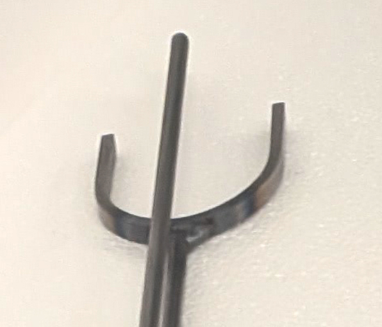 “Hairpin” style Pouring Tong which clamps the crucible into the ring. Crucible will not fall out of tong when clamped.