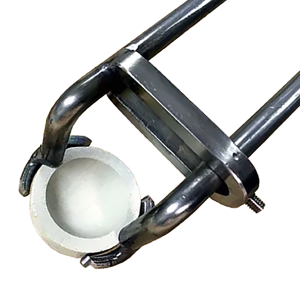 Extra long 60″ single pickup cupel tong for 1-1/2″ and 1-3/4″ diameter cupels. Adjustable opening to match cupel diameter for fast accurate cupel loading and removal. Can also be used for lead button loading.