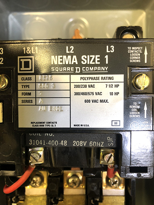 7.5 HP Pulverizer Crusher Starter Motor 208v 3PH 60HZ