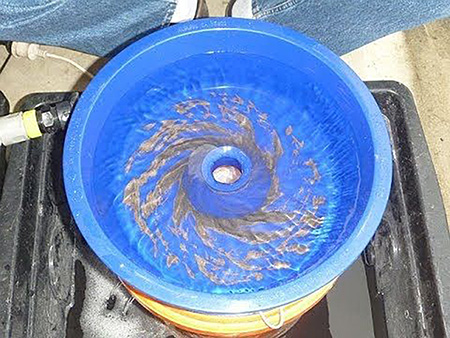 The BLUE BOWL concentrator makes easy work of what would take hours and does a more thorough job of removing the black sand from the gold dust.