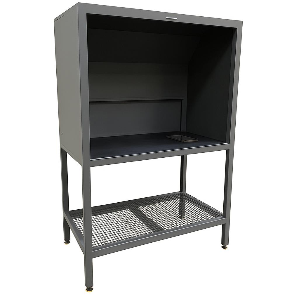 Heavy duty Compact Sized hood for Fluxing and slagging assays. Includes integrated chute to discharge slag waste.
