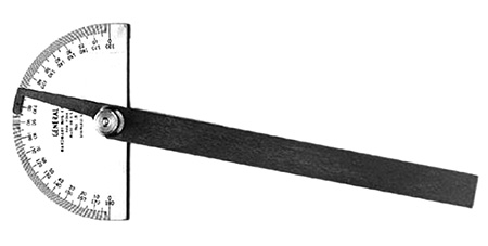 Angle measure has permanently etched graduations for 0 to 180 degrees in opposite directions.