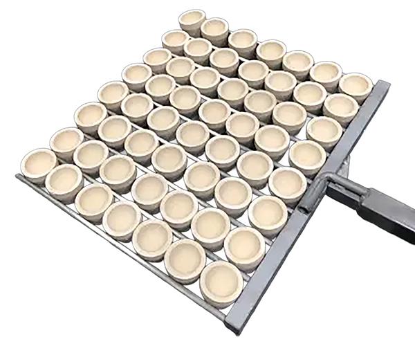 If you match the pattern of the cupel fork to your lead dropper it makes the loading and unloading of cupels and the placement of the lead buttons a much faster process.