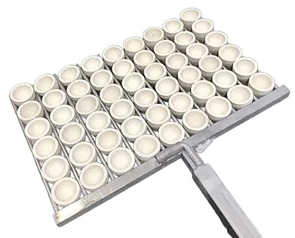 If you match the pattern of the cupel fork to your lead dropper it makes the loading and unloading of cupels and the placement of the lead buttons a much faster process.
