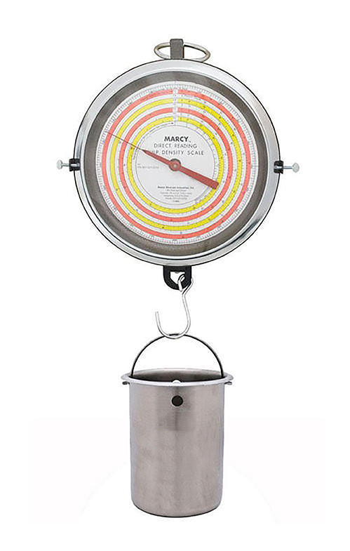 Marcy Direct Reading Pulp Density and Specific Gravity Scale speeds up the determination of pulp densities; specific gravities of pulps or liquids; specific gravity of dry solids. It eliminates errors in reading charts or graphs and prevents errors in calculations.
