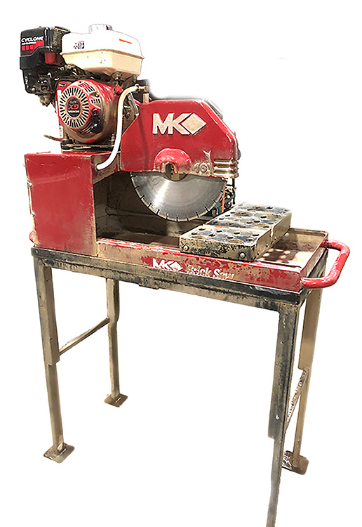 Includes used segmented diamond blade in good condition, custom made stand, and MK User Manual.